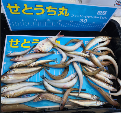 | タックル Rod:メジャークラフトTCX-S702M/NS Real: Daiwa ティエラ105XH PE:0.4号 Rig:Hayabusa 船キス8号3本バリ Weight:Hayabusa 目玉シンカー30号ピンクグロー Bait:ゴカイ、青虫 |